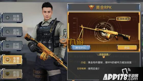以上就是APP178手游小编为大家带来的生死狙击手游手机版黄金RPK属性技能介绍,各位小伙伴在看了之后有没有清楚的了解了呢?知道它的技能和属性有哪些了吗?