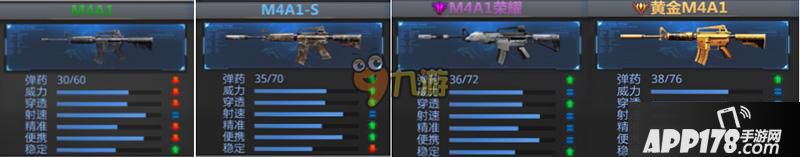 属性对比:黄金M4A1和M4系列的对比。