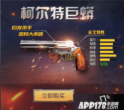 柯尔特巨蟒(永久)变异必备副手武器,变异模式下威力加成且弹道精准。