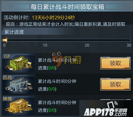 累计战斗30分钟3种战斗宝箱即可全部领取!切勿错过!
