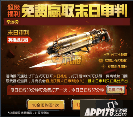 玩家每日在线满30分钟即可获得一次解密机会,有几率直接获得英雄级武器!