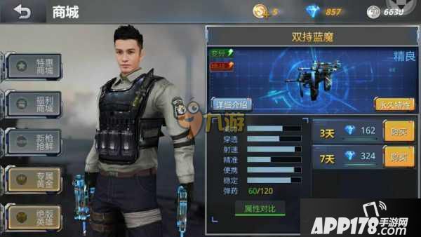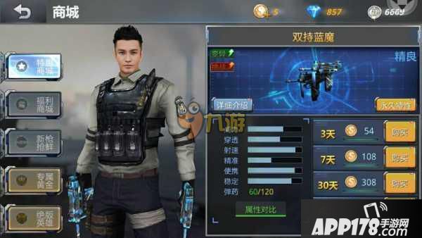 接下来是这把枪的属性,一个弹夹60发子弹备用弹夹120发火力有一定的保障,其次配上超高的射速可以在短短时间打出不少的伤害,和同类型的枪比的话蓝魔整体高于MP5并且弹夹翻了整整一倍,和黄金uzi比的话自然是不如,毕竟是黄金武器。