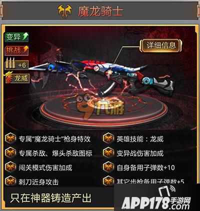 英雄级武器是很多生死狙击手游玩家都非常想要拥有的,只要手中握有武器,就算不去战斗,自己也可以爽一把,在二测的时候推出的两款英雄武器末日审判和雷霆之怒成为大家关注的重点,不过在这次圣诞节来临之时,也推出了全新的魔龙骑士英雄武器,没错,炫酷爆表的装备就是它,接下来APP178手游小编来和大家详细的介绍一下,同时也告诉大家如何可以免费的获取到哦!