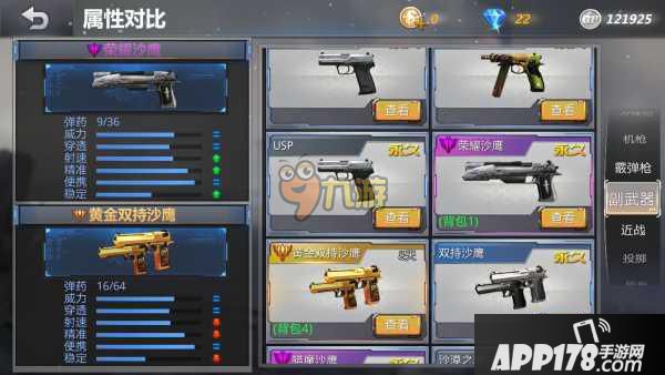 下面是和我们的黄金双持沙鹰做一下对比,黄金双持沙鹰的弹药比荣耀沙鹰要多的多。因为毕竟是双持沙鹰嘛,有两把枪,如果两把枪还没一把枪子弹多的话那就不用玩了。但是其他方面荣耀沙鹰确实是比黄金双持沙鹰要好,而且价格还便宜不少。所以启辰推荐荣誉沙鹰。