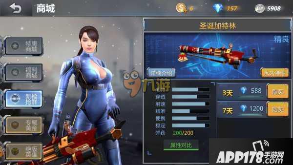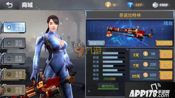 在游戏商城里就可以获得这把武器,但是唯一好的地方就是只能获得时限武器,却获得不了永久武器。在商城里可以用金币购买,也可以钻石购买。但是钻石购买确实有点贵,有点不好攒。最好是使用金币购买武器