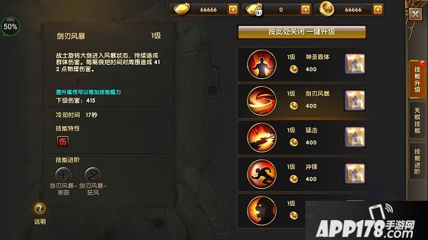 剑刃风暴:战士旋转大剑进入风暴状态,持续造成群体伤害。每隔很短时间对周围造成412点物理伤害。