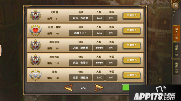 1.没有公会的玩家,在公会界面的公会列表中查看服务器内所有公会,选择目标公会加入,等待对方公会管理同意后,即可成功加入该公会。