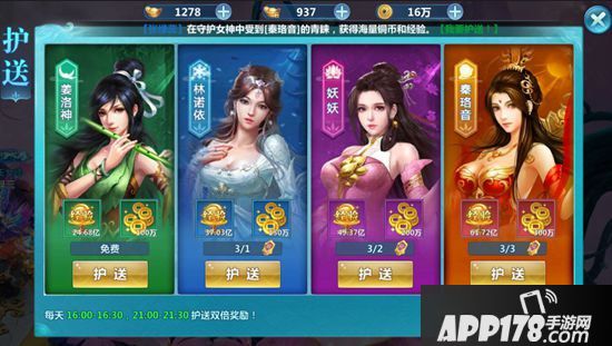 每天的16点-16.30跟21.30-22点,这两个阶段可以参加护送女神活动,只要玩家在这两个时间段参与活动就可以获得双倍经验。每天会有三次的免费机会,但是使用其他护送方式,可以获得更多经验,因此就看玩家怎么选择。