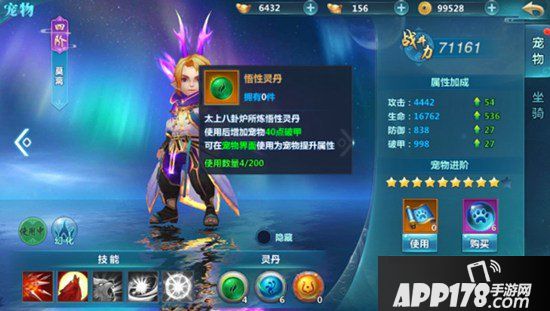 给宠物喂养灵丹可以增加宠物的额外属性,不同灵丹拥有不同的属性。悟性灵丹增加40点破甲,潜能灵丹增加40点攻击,飞升灵丹增加200攻击、200破甲以及全属性提升2%。