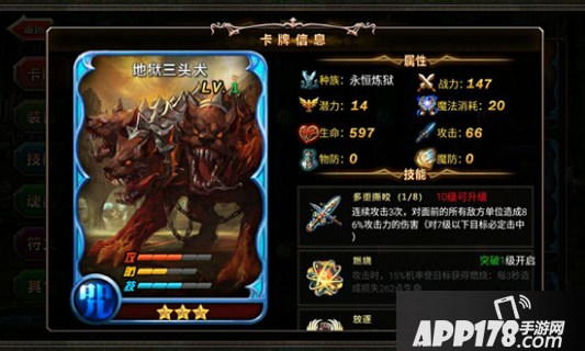 地狱三头犬它是一只集疯狂攻击、护卫己军为一体的战斗英雄;潜能突破后,它既能输出还能抗,并且还能给队友减免暴击伤害。