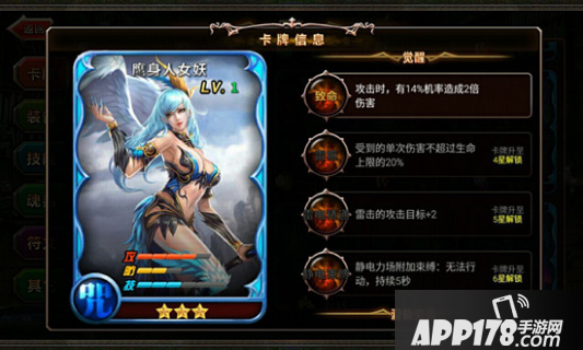 觉醒方面,攻击时可造成两倍伤害,雷击的攻击目标可增加,在短时间静电力场附加束缚,无法行动。在布阵上,小编推荐玩家将鹰身人女妖作为后备第一或第二位登场的英雄,在敌方后排比较强大的情况下,迅速进行压制,保证全队的生存,斩获更大的战果。