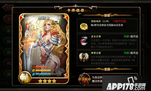 觉醒方面,为身边的友方单位单位分担一部分魔法伤害,同时减少一半自身受到的伤害;有近一半的机率抵抗所有不良法术的影响,是治愈专家回复光环的效果可提升一半能够保证友方一直处于战斗状态;使正义之锤必定震晕效果。在他们的武器中灌注了神圣的力量,使攻击造成额外的伤害。请好好利用吧!
