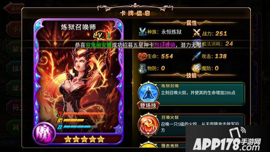 炼狱召唤师在所有法系英雄之中,对于火焰的控制是炉火纯青的。《神魔之战》中的炼狱召唤师虽然血薄,但攻击能力更是强的一塌糊涂。一登场便能够召唤一只火奴从天而降攻击敌方后方,配上全体增加攻击的强击光环,炼狱召唤师能够成为队伍输出的核心。想要获得她,玩家需要从神秘宝库中收集碎片哦!