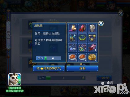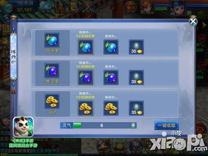炼丹系统的第一功能就是练出历练果,轻松增加英雄大量经验。在这里,你只需要提供些许原材料就可以轻松炼丹,轻轻一点,经验到手!这里推荐用烹饪产品来炼丹,这样能获得大量的灵气。(获取灵气的多少和烹饪产品的品质有关)