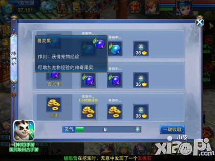 炼丹系统的第二功能就是练出兽灵果,兽灵果可以为宠物带来高额经验,这可比野外打怪练宝宝快得多!在培养一只给力宠物的时候,再也不怕挂机时间太长了,轻松养宠,一步到位!
