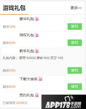 步骤3:或者直接查看"游戏礼包",点击领号、淘号、预定即可;