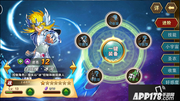 3、小宇宙和圣衣两项对圣斗士的能力也有不少提升,但是提升的难度较大,资源较为稀缺,获取难度较高。如果不是土豪玩家并不十分推荐大家将钻石花在这两项上。随着游戏的进程,获得多少就提升多少比较好,不用刻意提升。