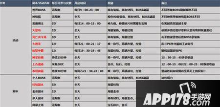 此处不用多说,MMO游戏每日的活动和副本都是主要的物品和经验来源,小编直接列表展示: