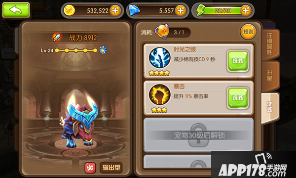 提升宠物的战斗力,有一项非常重要的功能就是宠物的洗炼,10级开启洗炼功能哦~