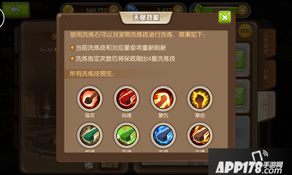 宠物洗炼通过消耗洗练石可以让宠物获得一些特殊的被动技能,利用被动技能的随机性、多样性来提升宠物的战斗力。