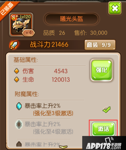 除了最基本的强化外,装备还可以激活,每次激活都会增加额外的属性,激活等级越高,属性也就越高。当然,代价自然是不菲的。好东西自然是需要好东西来换取的,最快的途径就是直接钻石购买了,不过小伙伴们只要勤劳一点,好装备其实并没有想象中那么困难得到哦~为了好装备,为了你心中要守护的他(她),努力吧!