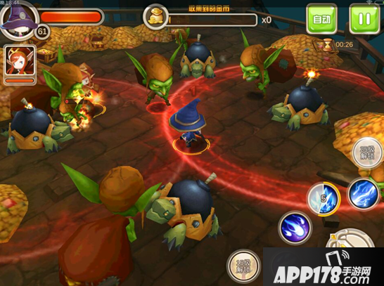 看,上图中茫茫多的哥布林,有大有小,一脸欠揍的样子,各位守护者只需要将技能对准他们哐哐哐一顿放就好了呢!然后海量金币就会噗噗噗的进入各位的钱包了呢!不过需要小心的是,看到地图中背着炸弹的乌龟了没,他们会自爆的哟,被炸到会损失很多血量的哟!各位一定要注意走位哟!
