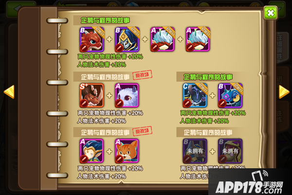 宠物与宠物之间存在单线的羁绊关系,当玩家上阵具有羁绊关系的宠物时,宠物会有不同战斗属性的加成。