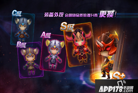而且!最最最最最最炫酷的就是,装备可以随着品质提升而改变呢!看C级装备就是一副路人甲的样子,但是S+装备,OH!!!NO!!!简直就是世界大BOSS啊!帅的不行不行的呢!