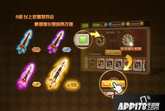 武器强化后将会获得特效!瞧这迷人的橙色光芒,分分钟晃瞎小伙伴!让他们纷纷投来羡慕的目光!