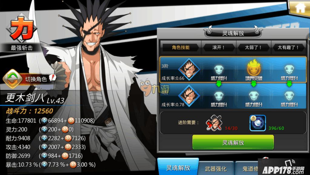 死神觉醒还原了死神Bleach漫画的经典人物剧情,从而也吸引了很多动漫迷,里面各种各样的人物角色、体系和战役,让玩家重新体验回经典漫画,但是在这款游戏中,人物角色培养以及切换人物是很多新手玩家非常头疼的一个问题,很新手玩家都不知道怎么培养人物,也不知道在游戏中怎么切换人物。下面APP178手游小编为大家详细的说说死神觉醒人物培养卍解以及怎么换人,一起和小编去看看吧!