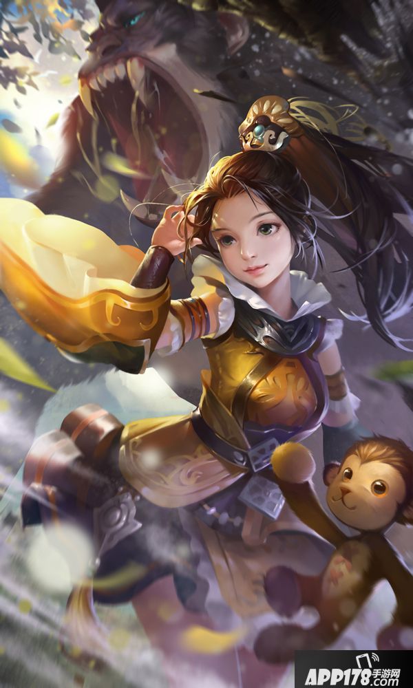 (技能解读:少女与心意相通的巨猿一同战斗,为了保护心爱的少女,巨猿会将坏人们都吓跑哦!)