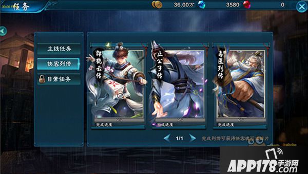 在任务系统上,要小提一个细节。一般游戏分为主线/支线。往往做着做着就把剧情和任务给忽略了。《三剑豪2》分为主线和侠客列传(虽然这个是个跟支线差不多的东西),主线获得大量经验,而侠客列传则是进一步融入以侠客为主视角的剧情,在没有主线任务做的时候,看看剧情还蛮有意思的。