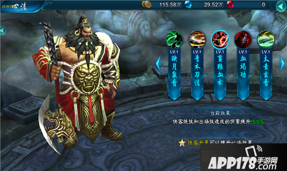 侠客战斗技能造成的伤害提升15.5%(心法效果随侠客星级提升)