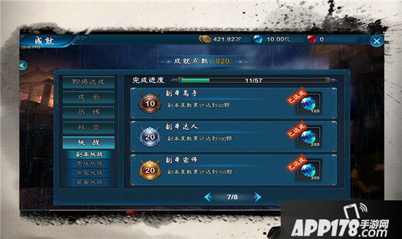 然而,游戏中绝大部分的成就都需要玩家花时间积累,比如副本进度,副本挑战次数等等,初始的部分比较容易完成。