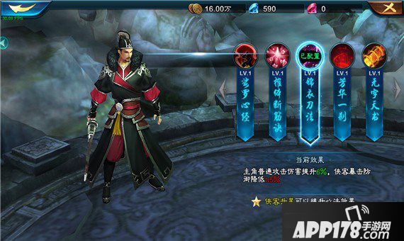 主角普通攻击伤害提升6%,侠客暴击防御降低1.5%(心法效果随侠客星级提升)