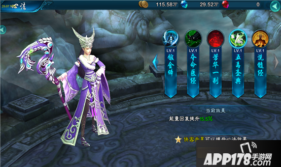 能量回复提升15.5%(心法效果随侠客星级提升)