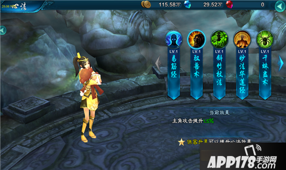 主角攻击属性提升1.5%(心法效果随侠客星级提升)