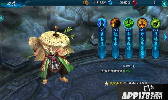 主角生命属性提升2%(心法效果随侠客星级提升)