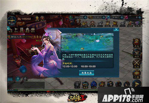 温泉开启后,在收益时间内进入即可获得经验,中途可通过购买道具提升经验加成。