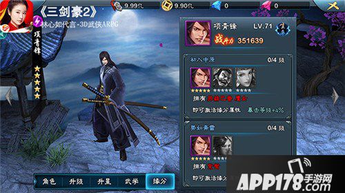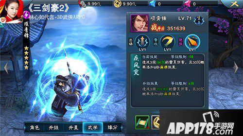 今天为各位带来的侠客是项青锋。品阶为紫色,属性为雷。