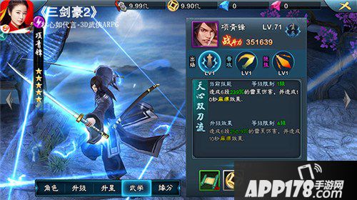 心法-天心流:主角攻击有4%概率造成瘫痪效果,持续2秒,冷却10秒。