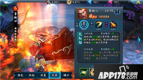 绝技-烈阳五狱斩:造成5段163%的火系伤害,30%概率造成8秒灼烧效果。
