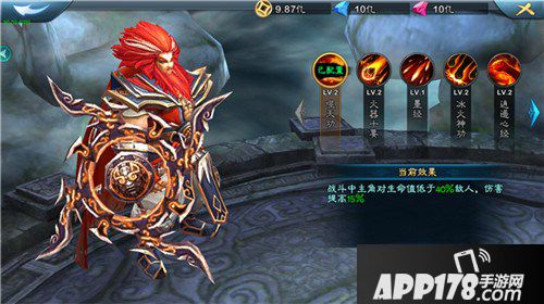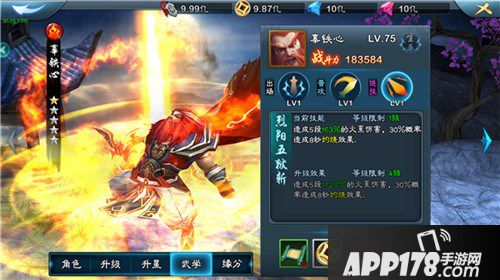 心法-噬天攻:战斗中主角对生命值低于40%的敌人,伤害提高15%。当然这只是1级心法的效果。辜铁心的心法可以让使用者越战越勇,在双方实力相当的情况下,装备了这个心法完全是可以立于不败之地。