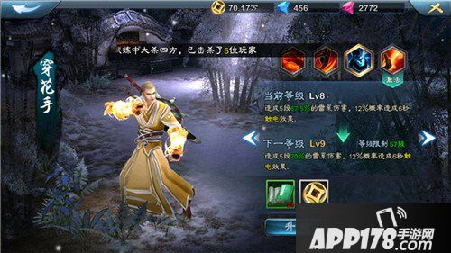 (一)寂灭掌:普攻变远程有木有!一样没有冷却,但是会有个准备动作,所以速度比穿花手慢很多。这里要提示大家,尤其是长期玩网友的朋友,不要看这个寂灭掌攻击百分比高,就觉得它比穿花手好用,我已开始也这样想,结果,这个百分比是最终伤害百分比,也就是说等于对方防御也提升了这么多。