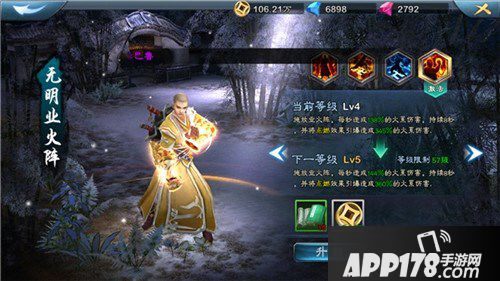 (四)无名业火阵:首先这个技能看起来比雷的阵法好,因为伤害高,这个我记得很清楚,雷阵初始伤害100%,火的是120。但是真的这个阵就很好么?攻击范围小、而且引发点燃的技能也是一个范围技能,不像雷是身边必然击中,点燃难度相对较高,需要配合两个火系侠客。这个跟雷阵一样,注意引爆,很重要。