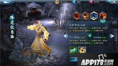 (四)降龙伏象阵:这个技能是超大范围持续伤害,比火属性技能的阵法范围大了很多,也是雷系属性终极奥义,300%伤害(我这是升级以后的,初始技能图他们不给我,据说原因是我没头发,恩,就不告诉你们是肥皂不给我了,要不然不给我发表咋办!)。注意,这个300%伤害一定要在对方被你打出了触电效果的情况下才行,那怎么打触电呢?穿花手和伏魔杖法都可以!强烈建议起手伏魔,然后降龙阵,然后穿花,为啥?因为这个阵法持续九秒,每次触电都会被引爆,也就是说,穿花手能造成的触电效果,已经变成了每次300%伤害!很吓人,有木有!