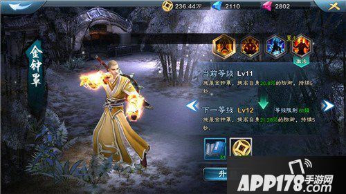 (五)大挪移法:这个技能我就要吐槽!啥玩意?恢复能量?直接导致我少林的麻痹攻击效果一点意义都没有,也许竞技场有用,野外打架带这个?逃跑用的!所以建议玩雷的僧友们,最后的技能用金钟罩,保证存活,对于雷少林,活着,就是输出!上一下金钟罩的图。