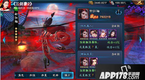当收集齐针红袖、南拂玉、蓝月儿和花鸿雪之后,则又会激活词条[四大美人],效果为提升百分比攻击力。