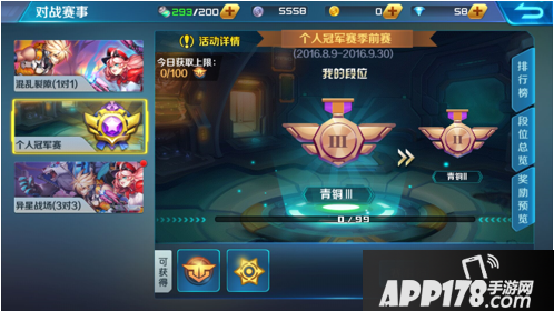 赛事的奖励也是很给力的。个人冠军赛可以给我们带一个独特的排行系统——段位,从青铜3开始,我们可以通过不断的战斗来提升段位,证明自己。而混乱裂隙和异星战场有着更加直接的奖励,为我们提供优秀的装备,可以说在提供了足够经验值奖励的同时,还有这样丰富的奖励,对战赛事怎么能不吸引力十足呢?看着心动的你,还不赶快行动起来,加入到对战赛事玩法中吧!