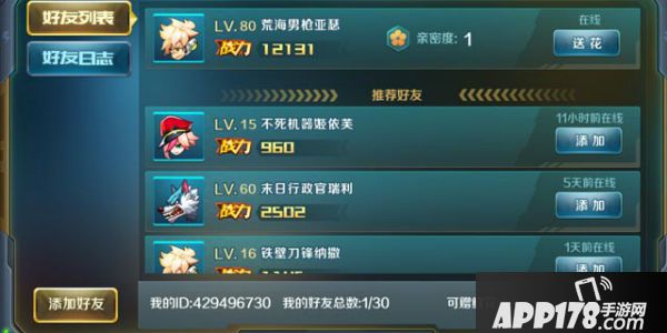 当然在好友列表上也会有推荐好友哦!除了添加好友,我们还可以培养我们和好友之间的亲密度,通过赠送鲜花就可以增加好友间的亲密度。而鲜花通过活动可以获得。